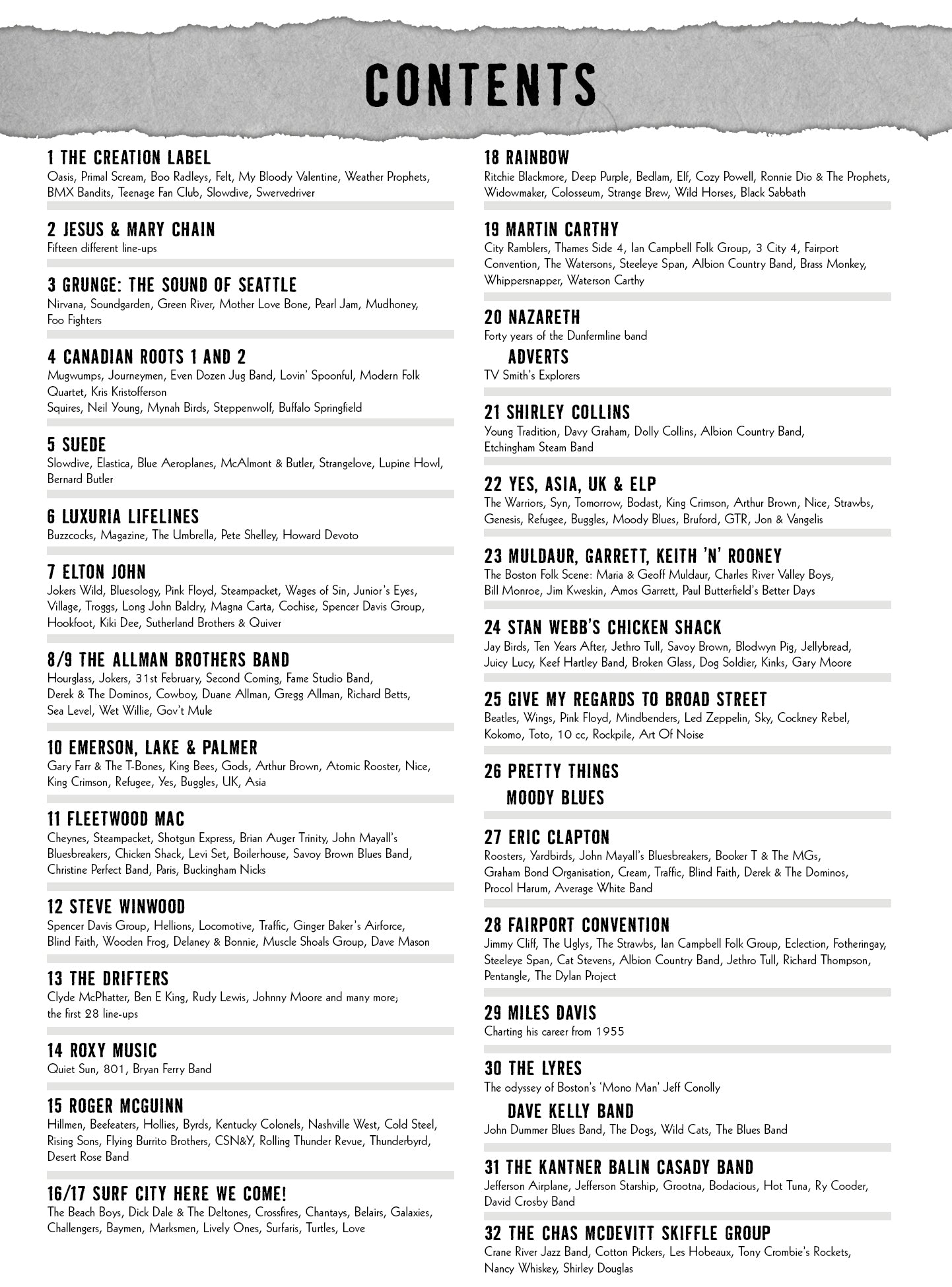 This latest set includes newly drawn family trees of Elton John, the Allman Brothers Band, ELP, Fleetwood Mac, Steve Winwood, The Drifters, Roxy Music, Roger McGuinn, Beach Boys, Martin Carthy, Shirley Collins, Yes, Asia, Eric Clapton, the Yardbirds, Miles Davis, the Creation label and many more.